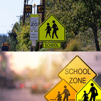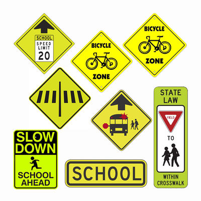 1علامات المدرسة العاكسة: هذه العلامات مثالية للاستخدام في مناطق المدارس وغيرها من المناطق التي يحتاج فيها السائقون إلى التباطؤ، مثل علامات عبور المشاة، علامات الدراجات، علامات المدرسة في المقدمة، الخ.